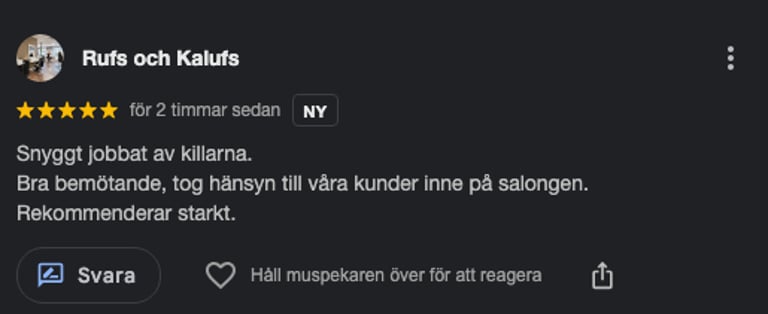 Fantastisk service och alltid skinande rent! Rekommenderar starkt för både hem och kontor.