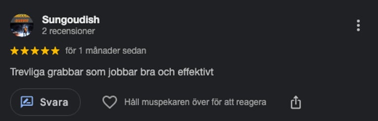 5 / 5 från nöjda kunder i Stockholm